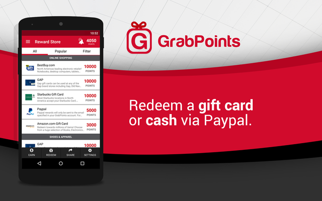 GrabPoints App is the Hottest Android App to Get Free Gift Cards & Make real money online.Grab points offers 1000 (1$) points for sign up and completing Profiles and you can also earn unlimited Real Money by Referring your Friends to this app. Grab Points app offering 500 ($0.5) points per referral. Hence it is the most popular app to earn money online. You Redeem your earning as PayPal cash, Amazon Gift Card etc.